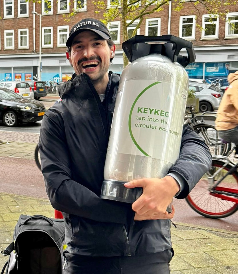 We work with the Dutch company called KeyKeg. The KeyKegs are made from recycled materials and are 86% recyclable as a waste product. They are sturdy, easy to carry around and easy to stack.